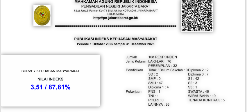 Ketua Mahkamah Agung RI pada tanggal 30 Agustus 2022 telah menerbitkan Surat Keputusan Ketua Mahkamah Agung RI Nomor 2-144/KMA/SK/VIII/2022 tentang Standar Pelayanan Informasi Publik di Pengadilan.